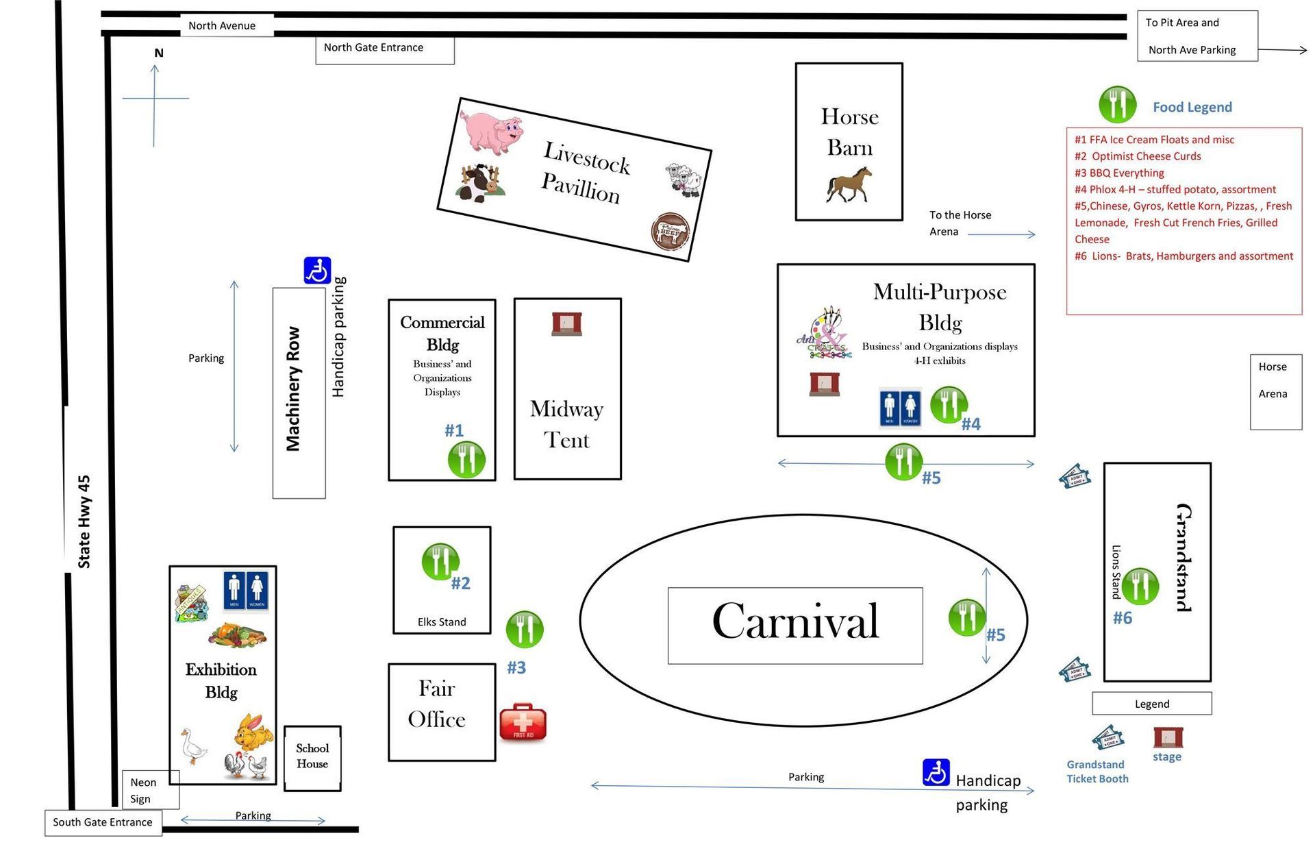 Paid Parking is available inside the grounds and in the North Lot, entrance is one block north of the grounds.